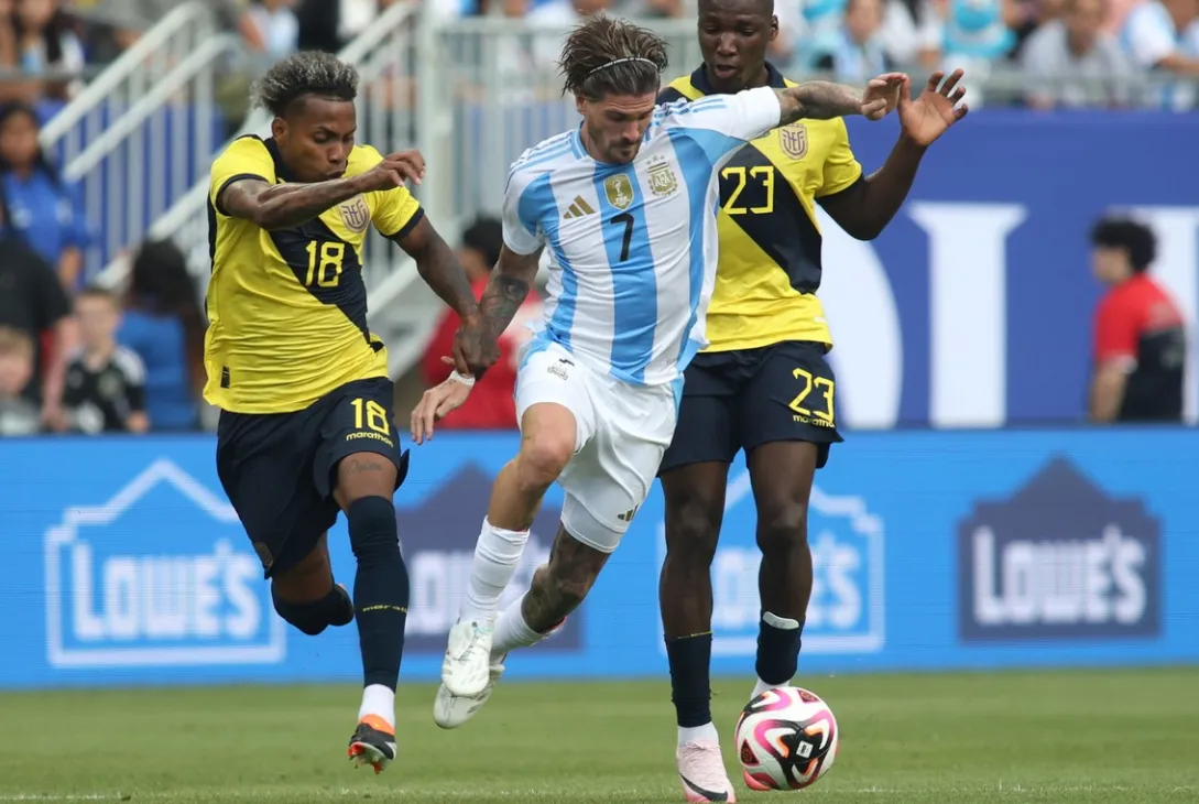 En el mediocampo, el DT mantuvo a Leandro Paredes, Rodrigo De Paul y Thiago Almada, con Nicolás González por izquierda y no Franco Mastantuono. Además, en la delantera estuvo el doble nueve: Lautaro Martínez fue confirmado como titular por Scaloni por Messi.