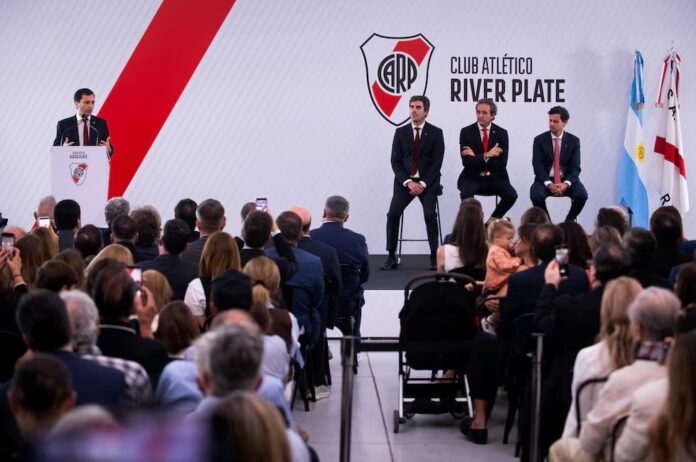 Stefano Di Carlo fue elegido el sábado como el nuevo presidente de River y este lunes se realizó su presentación oficial al mando del Millonario. Con 36 años, se impuso en las elecciones con un contundente 61,77% de los votos.