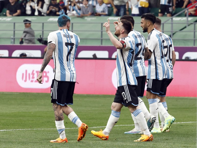 Se trató de la primera situación para Argentina y de la primera aparición de Messi en el partido, en el que una multitud vestida de celeste y blanco coreó su apellido desde el momento en el que pisó la cancha.