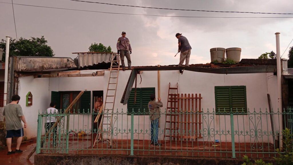Un temporal con ráfagas fuertes afectó a Montecarlo. Alrededor de 80 familias fueron damnificadas y 40 viviendas con techos dañados. No se reportaron heridos graves.