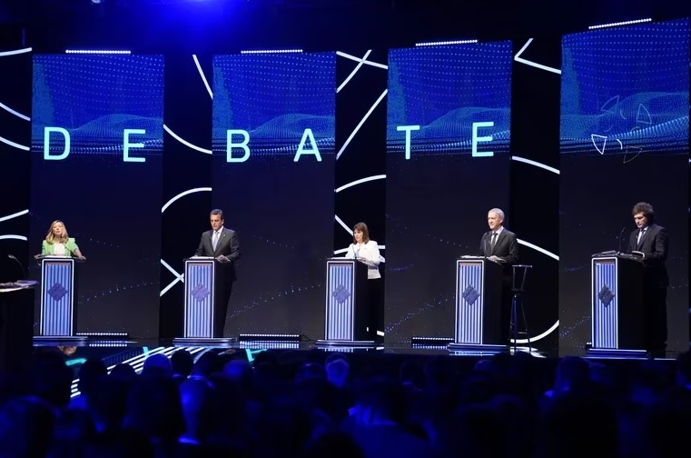 Javier Milei (La Libertad Avanza), Sergio Massa (Unión por la Patria), Patricia Bullrich (Juntos por el Cambio), Juan Schiaretti (Hacemos Nuestro País) y Myriam Bregman (Frente de Izquierda y Trabajadores Unidad), estuvieron reunidos por primera vez en un mismo escenario y protagonizaron durante más de dos horas una batalla dialéctica que fue transmitida en vivo y directo a todo el país, con picos de rating por encima de los 40 puntos.