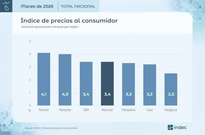 La región NEA fue la más golpeada, con una suba de 4,1%. Allí la educación trepó 22,7%, las viviendas y servicios básicos 9,7%, y los alimentos y bebidas no alcohólicas 4,5%. El NOA le siguió con 4,0%, mientras que el GBA registró 3,4% y la Patagonia apenas 2,5%.