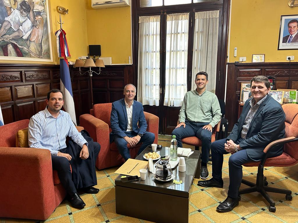El ministro de Hacienda de Misiones, Adolfo Safrán; junto a Martín Leiva Varela, director general de Ingresos y Finanzas; mantuvieron una reunión con el gerente zonal de Banco Nación, César Tortolo; y Juan Carlos Fernández, responsable de Medios de Pago de la entidad bancaria.
