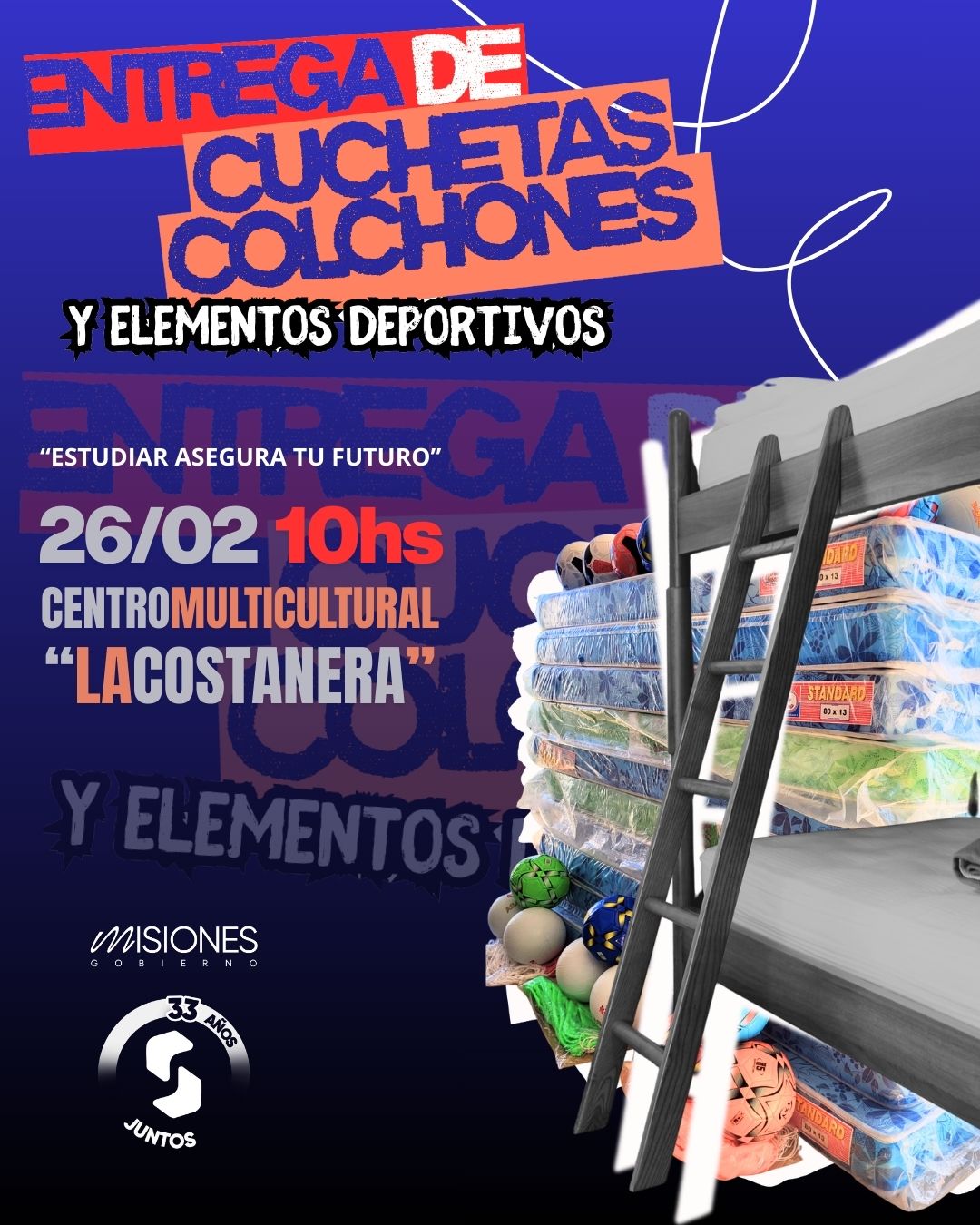Con una fuerte apuesta al futuro de miles de estudiantes, se concreta la entrega de elementos deportivos, colchones, cuchetas, anticipándose al inicio del ciclo lectivo, que comenzará el próximo 2 de marzo en toda la provincia.