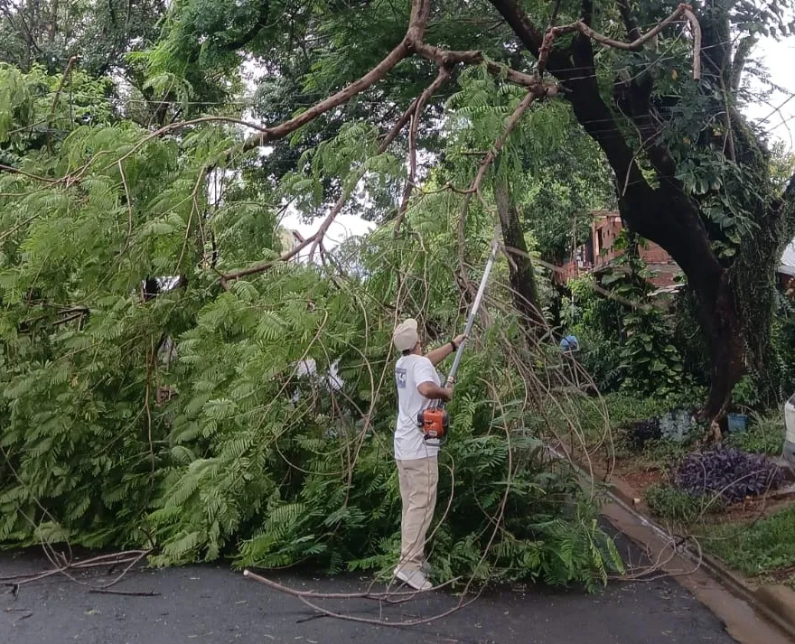 La Municipalidad de Posadas, bomberos de la Policía de Misiones, trabajan intensamente en tareas de despeje de ramas caídas y asistencia en general tras las intensas lluvias que cayeron durante las últimas horas en la ciudad.