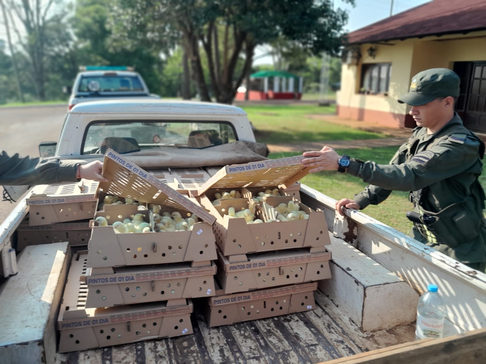 Al momento de la inspección de la caja del rodado, los funcionarios advirtieron la presencia de cajas con 1.500 pollitos de origen brasileño sin contar con el aval que acredite el estado sanitario de los mismos.