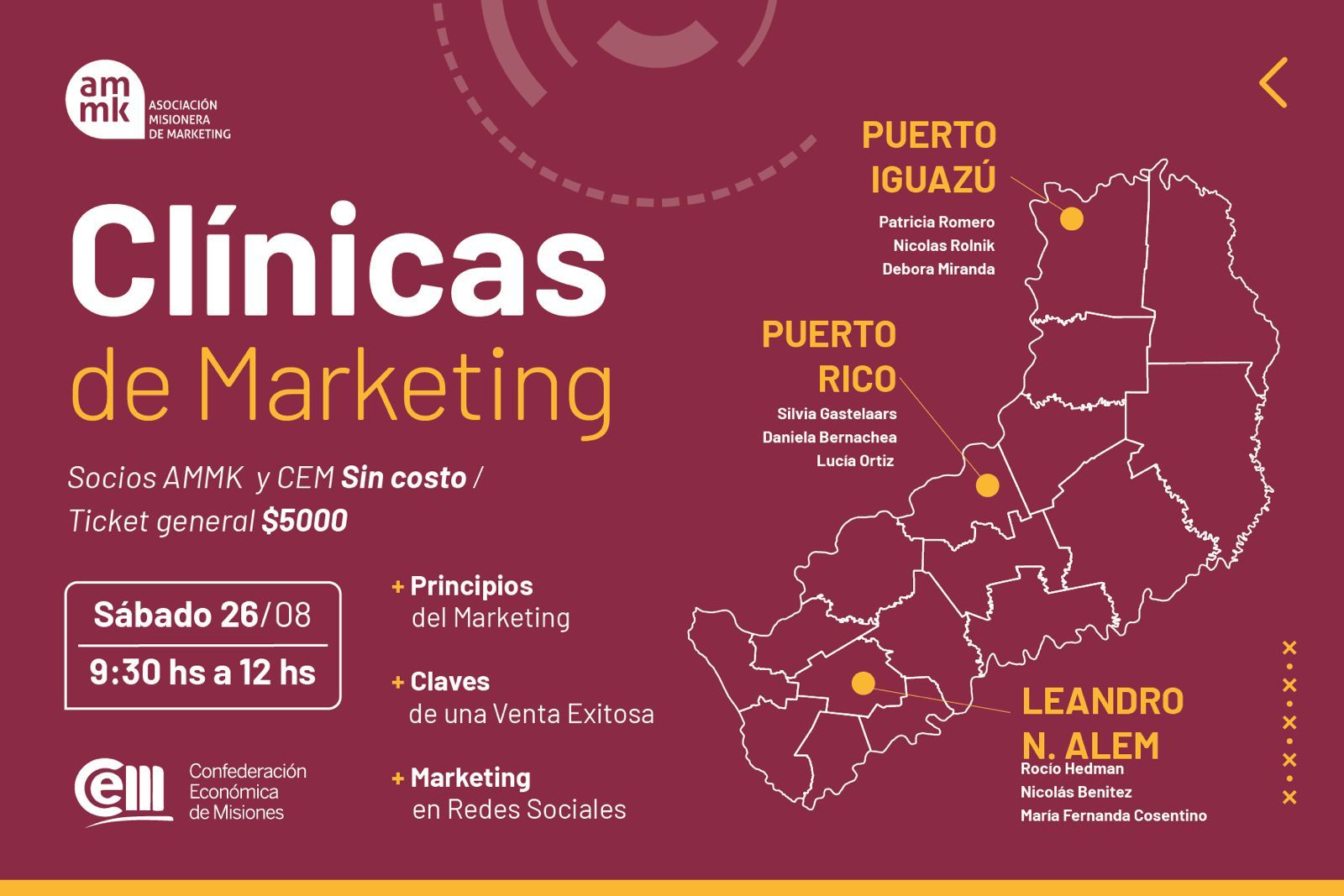 Alentando las buenas prácticas profesionales, el trabajo en equipo, la interacción entre disciplinas y entre ciudades, los profesionales de la Asociación Misionera de Marketing dictarán un ciclo de clínicas que tendrá como objetivo acercar el marketing a la sociedad y ofrecer herramientas que se puedan aplicar a las ventas, la planificación de comunicación y su desarrollo en redes sociales.