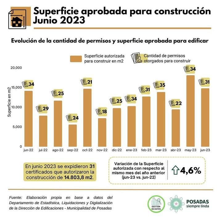 En junio de 2023, la Oficina Municipal de Gestión de Datos de la ciudad de Posadas elaboró un informe que reveló la entrega de 31 certificados de permisos de obra.