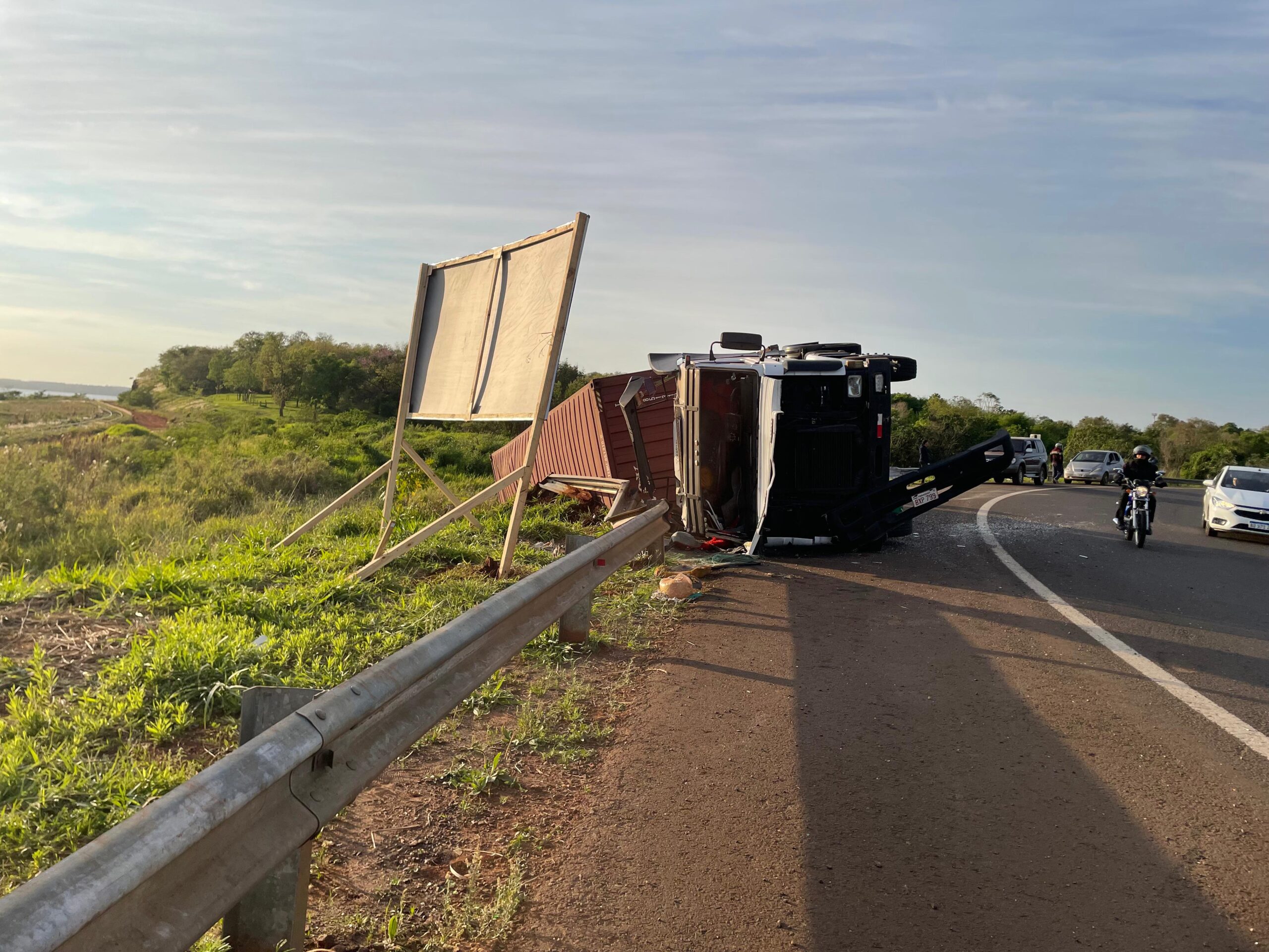 Un camión despistó y volcó en la rotonda del Acceso Sur, en sentido Garupá-Posadas.
