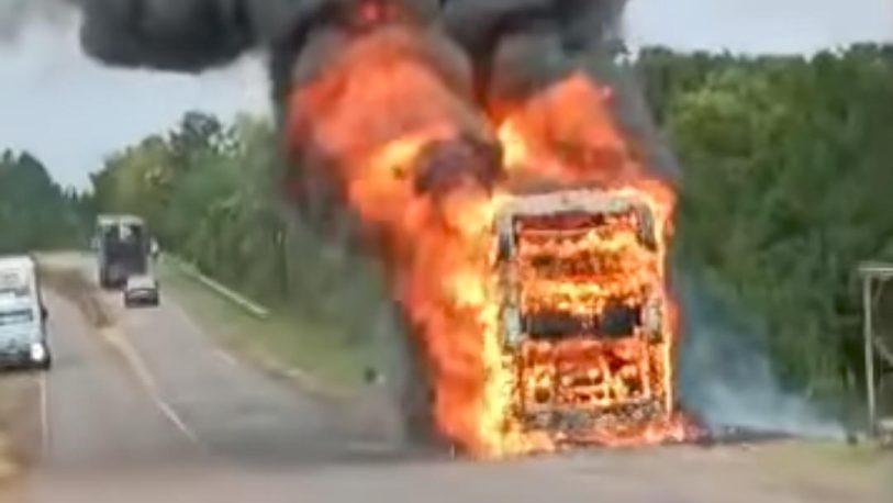 Un micro de la empresa Crucero del Norte se incendió este miércoles sobre la ruta provincial 103, a la altura de Mártires, en dirección a Oberá.