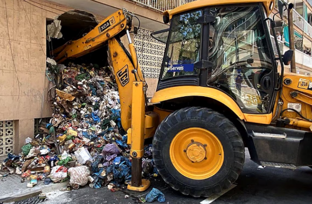 El rescate ha durado en total siete horas. Desde las ocho y media, con una excavadora y a través de la ventana, los bomberos han ido retirando las bolsas, plásticos, cajas y demás basura acumulada en el domicilio del hombre, que presuntamente padece el síndrome de Diógenes. Finalmente, a mediodía, los especialistas llegaron hasta él, tal y como ha avanzado la periodista Anna Punsí.