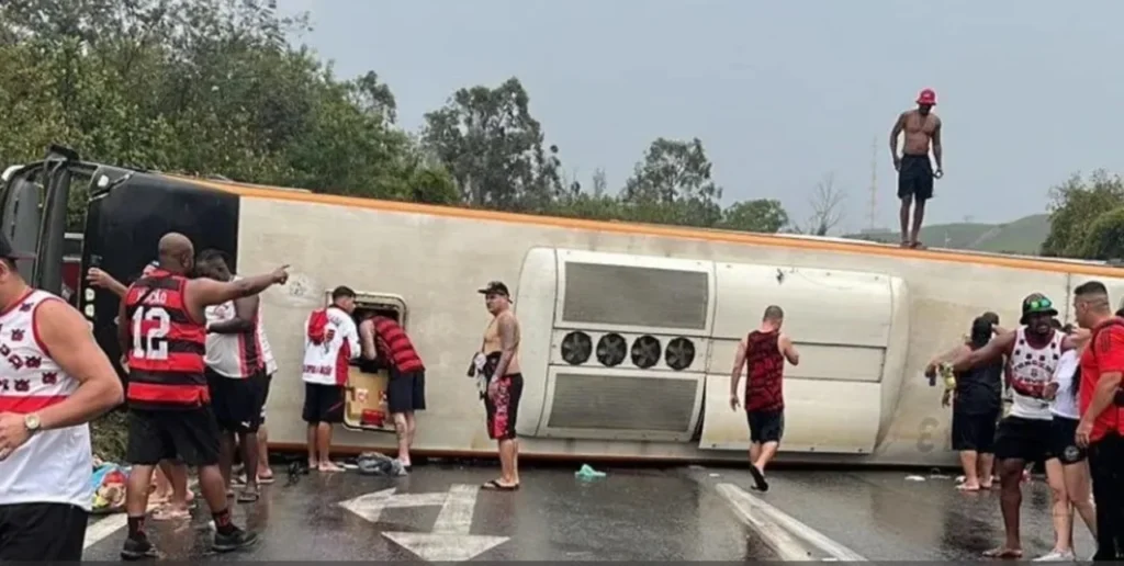 Un micro que trasladaba a simpatizantes del equipo brasileño volcó este lunes en la autopista Presidente Dutra, a la altura de Barra Mansa, en el estado de Río de Janeiro. Al menos 16 personas resultaron heridas, y tres de ellas permanecen en estado grave.