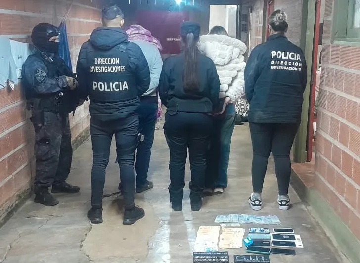 Los detenidos fueron aprehendidos en el barrio Los Paraísos de Posadas, donde los efectivos de la Dirección de Investigaciones Complejas, la sección Investigaciones de Garupá, Infantería y la Motorizada recuperaron 205 mil pesos, 100 dólares, un teléfono celular y varios elementos de interés para la causa.
