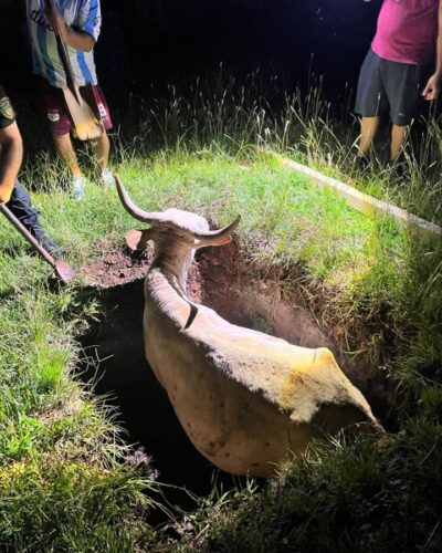 Finalmente, alrededor de las 23:30, y con la ayuda de vecinos y bomberos, lograron retirar al animal del pozo, poniendo a salvo al bovino.