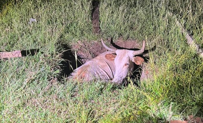 Candelaria: rescataron a un toro que se cayó en un pozo ciego