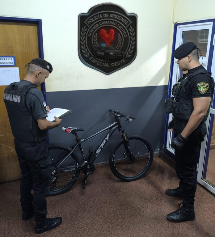 Finalmente, en el marco de una investigación por hurto denunciado el pasado 7 de marzo, efectivos de la División Comando Táctico Especial Oeste realizaron averiguaciones en la zona de avenida Kolping casi Blas Pareras, donde recuperaron una bicicleta marca Spy Ridder, rodado 26, que había sido sustraída a una mujer de 43 años. El rodado fue secuestrado y depositado en la Comisaría Primera para continuar con las actuaciones judiciales.