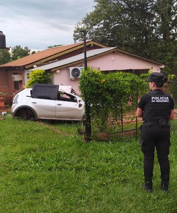 Al arribar al lugar, el personal policial constató el despiste de un vehículo Renault Sandero, que circulaba por calle Kornel en sentido norte-sur. Por causas que se tratan de establecer, el conductor perdió el control e impactó contra un cerco perimetral y una vivienda lindante.