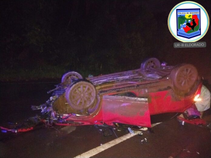 El hecho ocurrió cerca de las 20 horas, a la altura del kilómetro 1567, en el paraje Aguaray Miní. El vehículo, un Fiat Futt conducido por Martin Fernando H., circulaba en sentido Iguazú–Posadas y, por causas que se investigan, perdió el control.