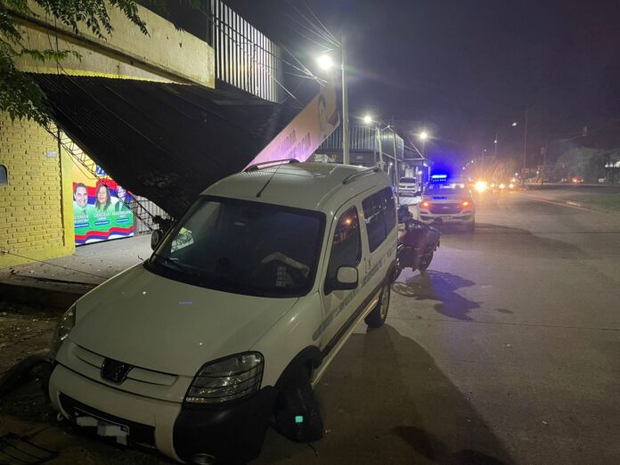 Un utilitario perdió el control y terminó impactando contra un cartel publicitario sobre la avenida Tulo Llamosas. El conductor resultó ileso y no se registraron personas lesionadas.