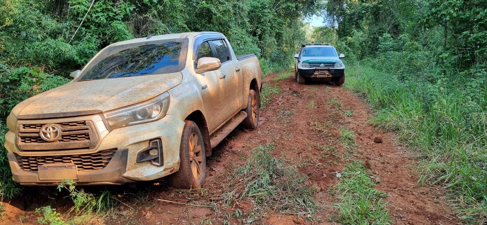 Momentos más tarde, los uniformados detectaron en la aldea Yeyí Miní, a la altura del kilómetro Nº 25 de la Ruta Provincial Nº 15, observó un rodado que coincidiría con la descripción brindada, el cual se encontraba abandonado sin ocupantes sobre un camino terrado.