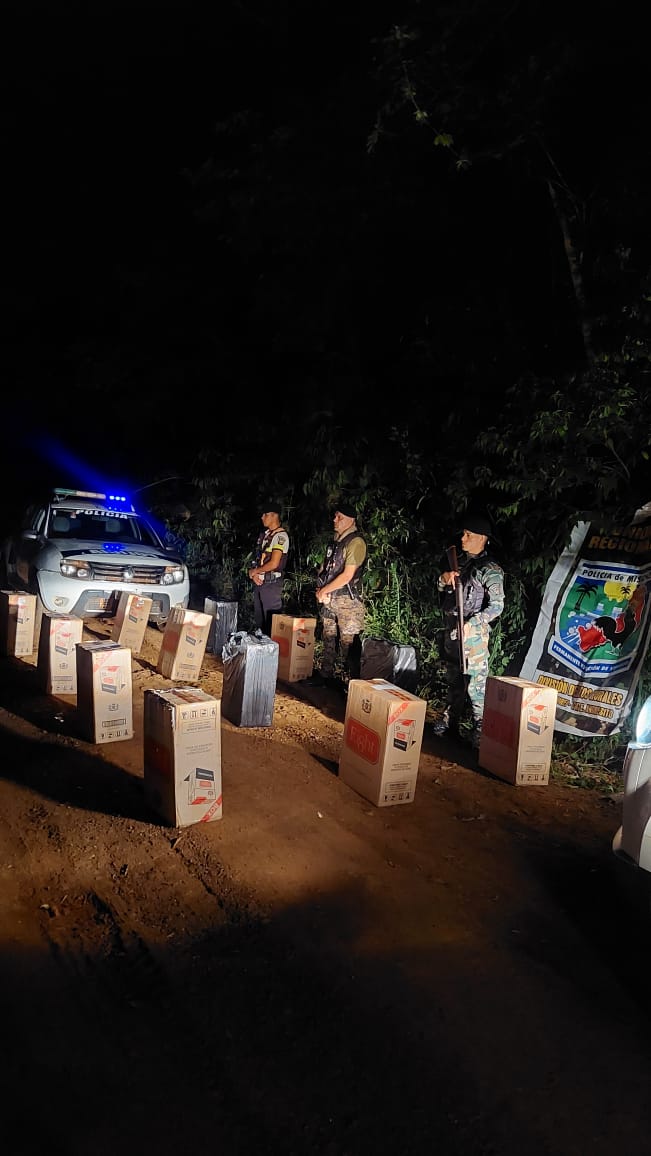 El procedimiento se concretó alrededor de las 22 horas, sobre la Ruta Provincial N.º 19 y sectores internos de la denominada Picada Uruguay-I, donde el personal se hallaba desplegado en tareas de patrullaje y rastrillaje. En ese contexto, al internarse varios metros dentro de una zona de densa vegetación, los uniformados detectaron bultos parcialmente cubiertos con ramas y malezas.