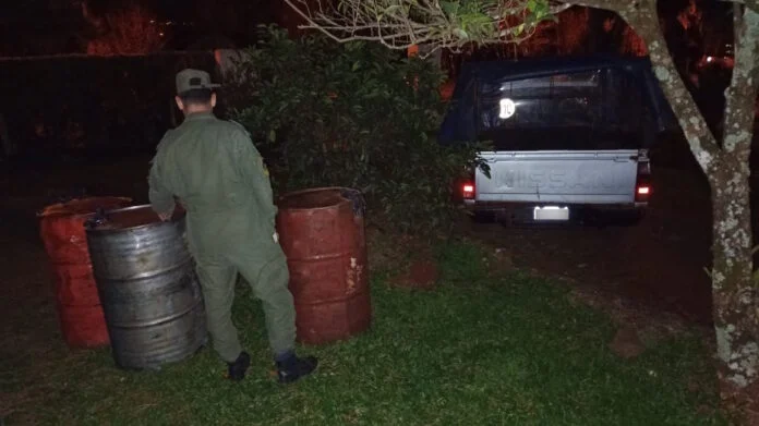 En el compartimiento de carga los gendarmes pudieron constatar que eran transportados 4 tambores metálicos, los cuales contenían 800 litros de nafta.