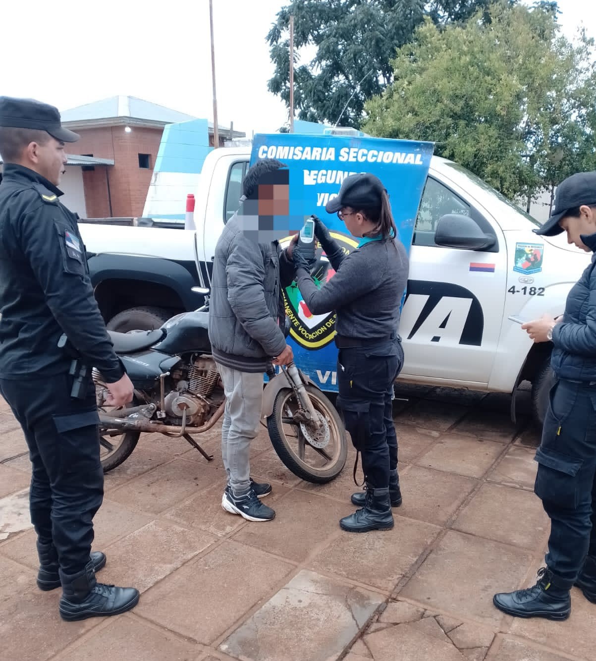 Frente al riesgo que representaba para él y terceros, el conductor fue aprehendido, mientras que la motocicleta quedó retenida. Se labraron las actuaciones correspondientes conforme a la normativa vigente.