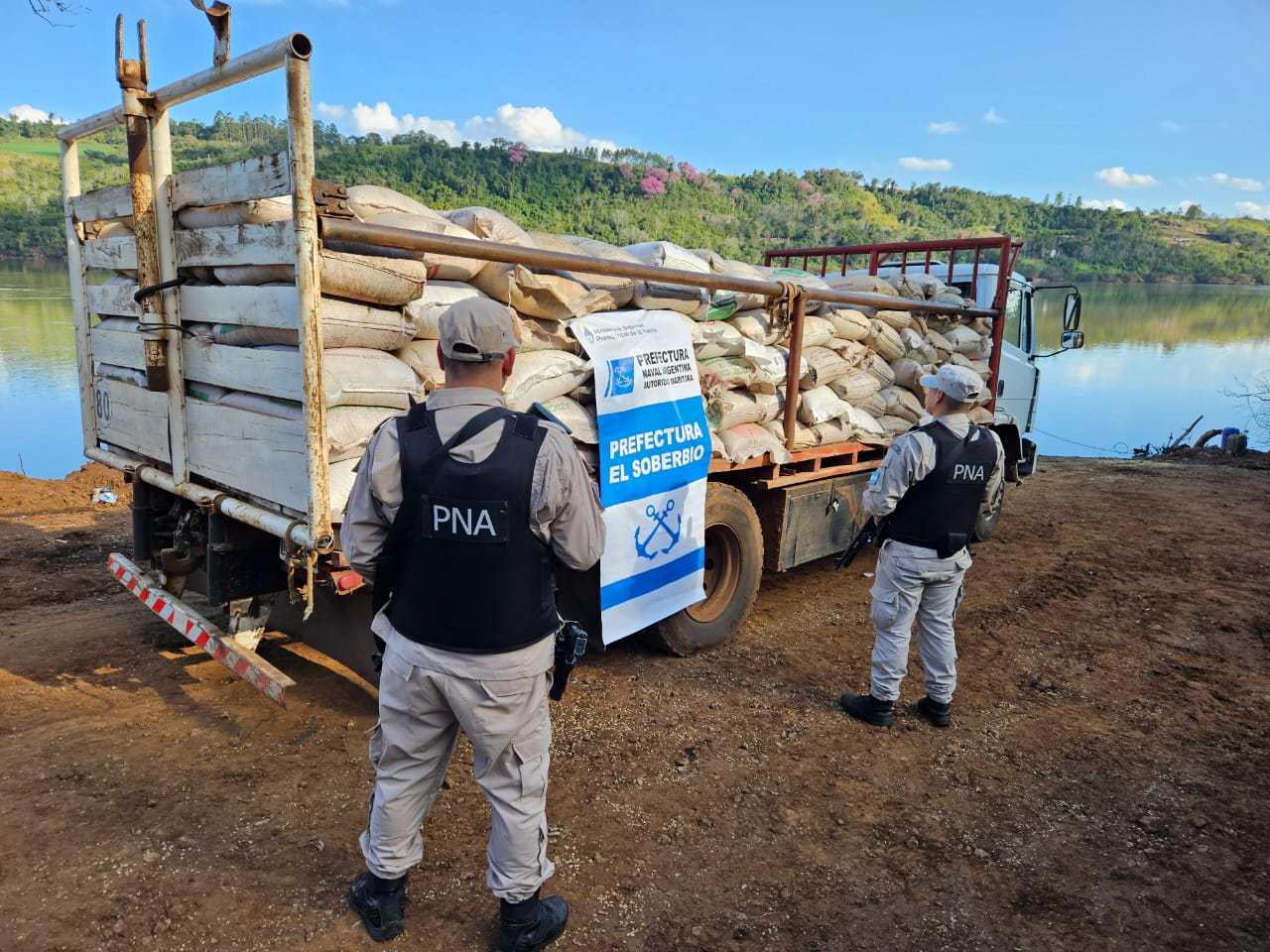 Efectivos de la Prefectura Naval Argentina decomisaron un cargamento de más de 11 toneladas de soja en la localidad misionera de El Soberbio.