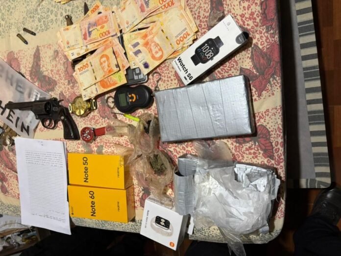 El operativo se concretó alrededor de las 20:30 horas de este martes, en el marco del allanamiento dispuesto por el Juzgado de Instrucción N.º 3 de Iguazú, en una vivienda del barrio 1.º de Mayo. El lugar era habitado por Ernán F., quien se encontraba bajo investigación por una causa de violencia familiar, aunque en la requisa surgieron pruebas que lo vinculan a la venta y distribución de drogas.
