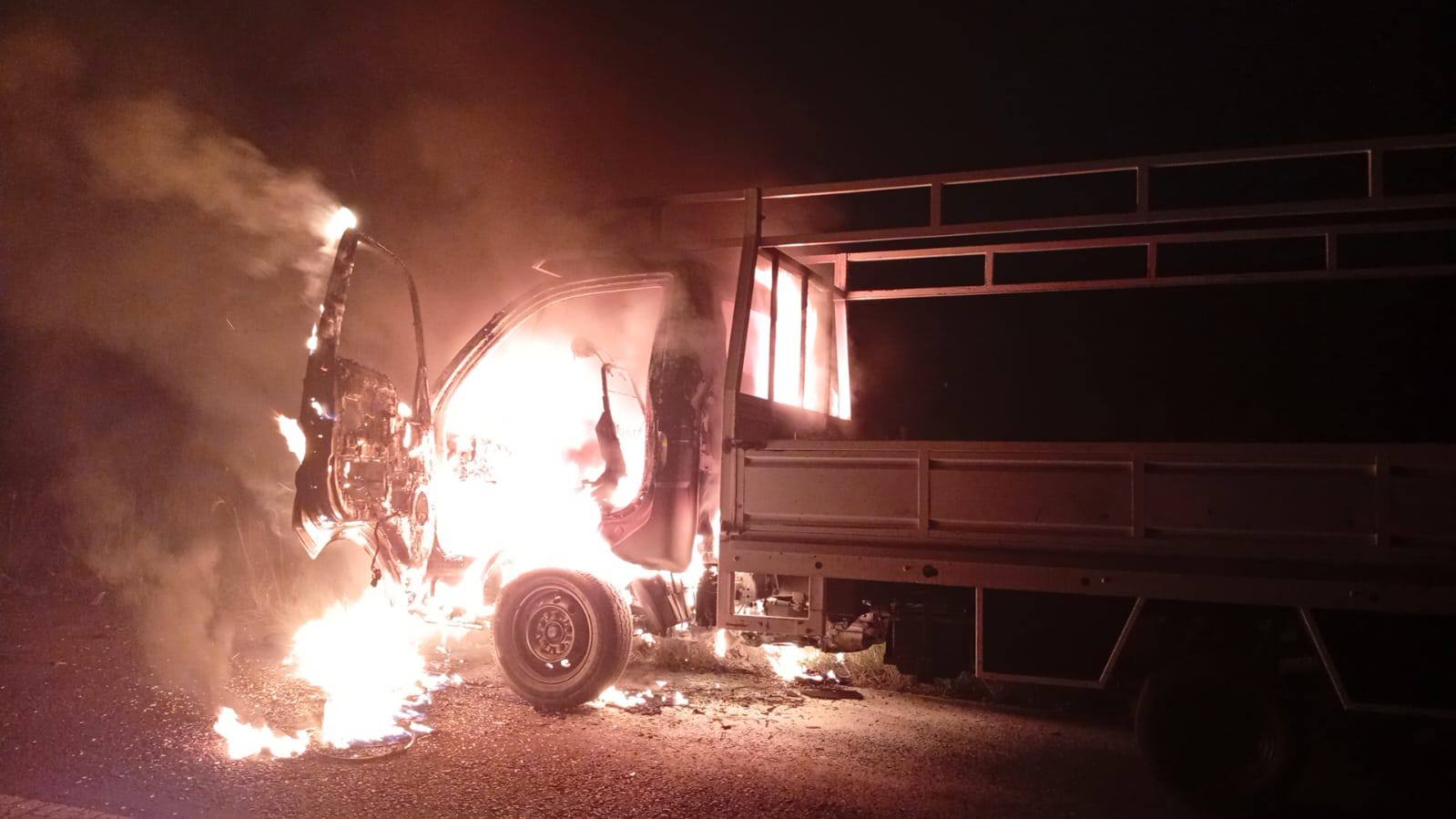 El siniestro se registró cerca de las 20:30 horas de ayer en la intersección de la ex Ruta Provincial 213 y el By Pass, donde por causas que se investigan se inició un foco ígneo en un vehículo de carga Kia 250.