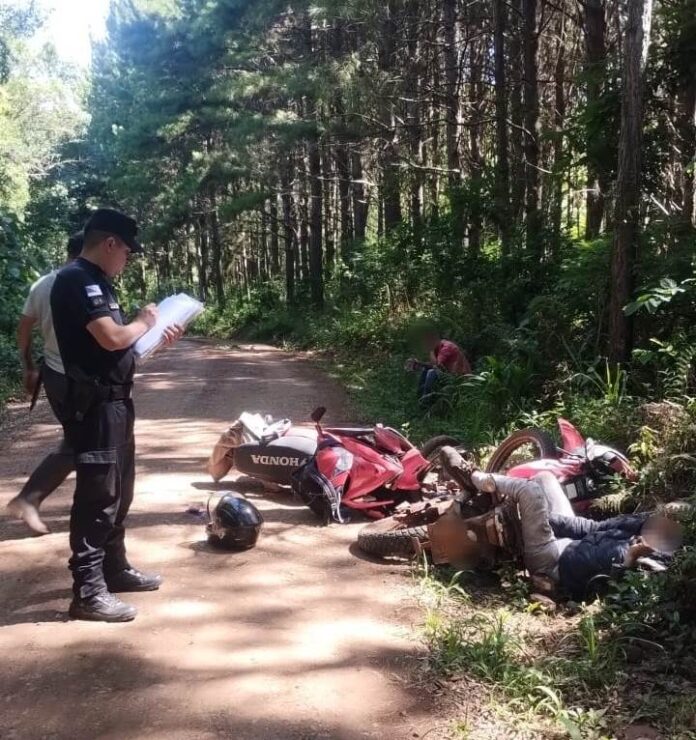 El hecho se registró en la tarde de ayer sobre un camino rural, donde por causas que se tratan de establecer colisionaron dos motocicletas marca Honda.