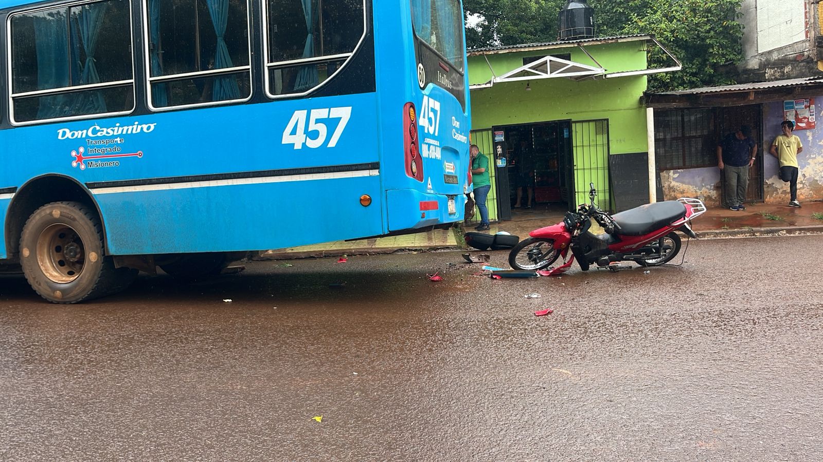 Este martes por la tarde, efectivos de la Comisaría de Candelaria intervinieron ante un siniestro ocurrido sobre la Av. Amalio Díaz, donde una motocicleta Keller 110 cc y un colectivo urbano resultaron involucrados.