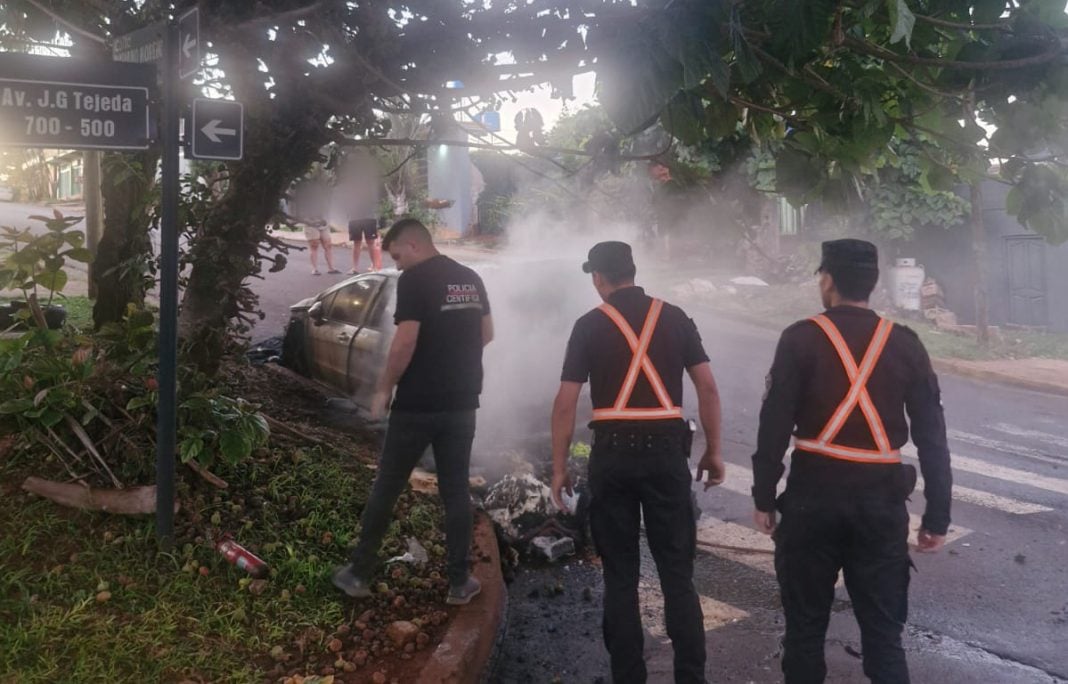 Esta madrugada, alrededor de las 5:30, un vehículo que se encontraba estacionado frente a una vivienda en la intersección de la avenida Tejeda y calle Mariano Moreno, en San Vicente, fue consumido totalmente por un incendio