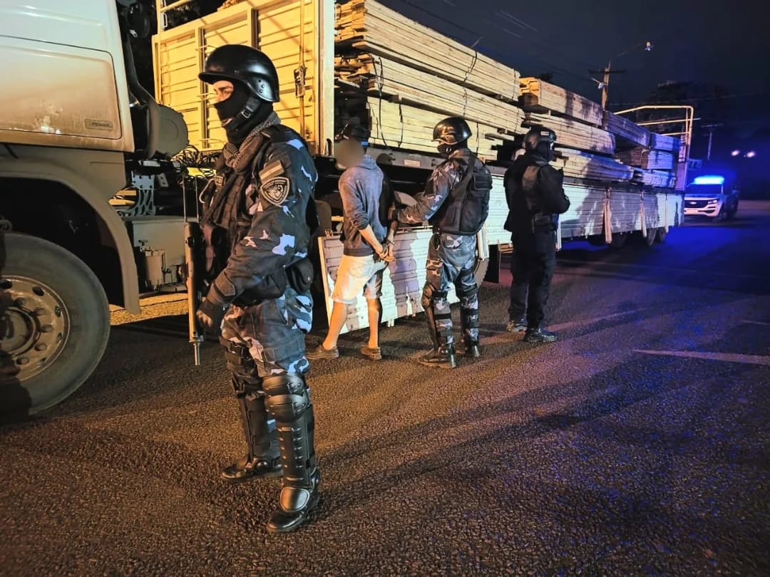 Los trabajos de inteligencia realizados por la Policía de Misiones condujeron a la interceptación de un camión con acoplado que circulaba por la Ruta Nacional 14, a la altura del kilómetro 868, que fue escaneado por los integrantes de Drogas Peligrosas de la Unidad Regional II de Oberá, detectando bultos plásticos entre medio de la cuantiosa carga de tablas de pino.