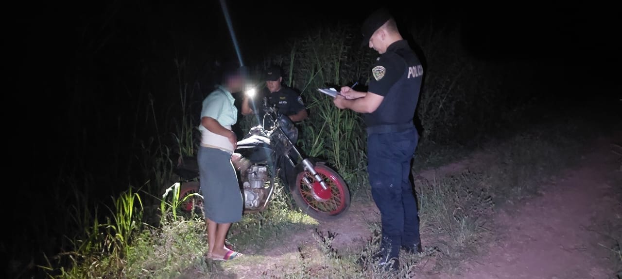 Inmediatamente, policías que realizaban patrullajes rurales en la zona de paraje Guatambú y La Cinco Mil, iniciaron rastrillajes por picadas cercanas al domicilio de la damnificada, hallando rastros que los condujeron a poco más de un kilómetro de la propiedad, ubicando dentro de un monte a los dos bueyes y la motocicleta, estando todo preparado para ser llevado.
