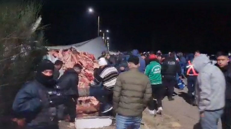 Video: saquearon un camión con más de 23 mil kilos de carne que volcó en la ruta