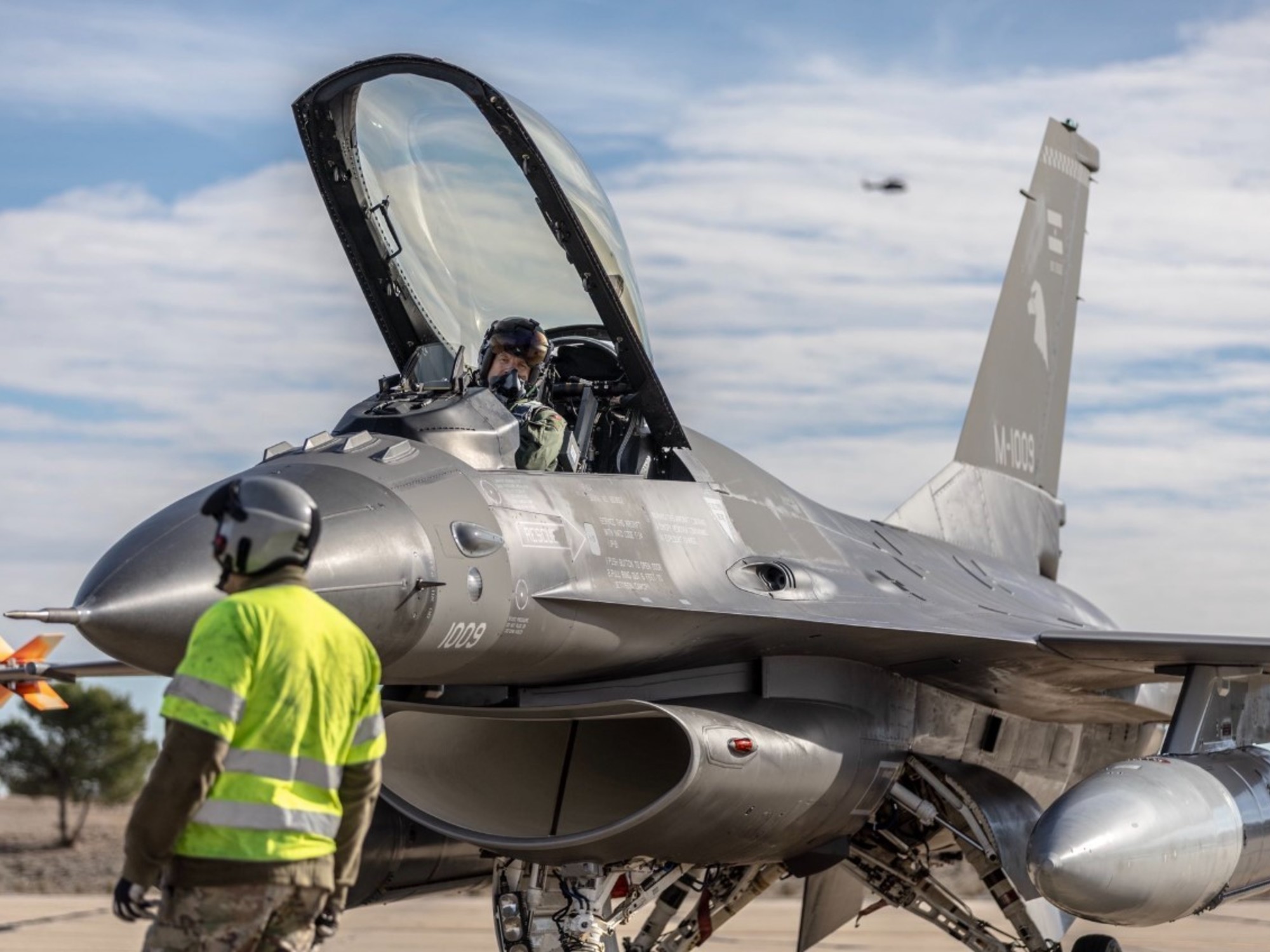 Durante la ceremonia, el mandatario vio el desfile aéreo y las demostraciones de vuelo de los F-16, que incluyen maniobras de alta precisión y simulacros de combate.