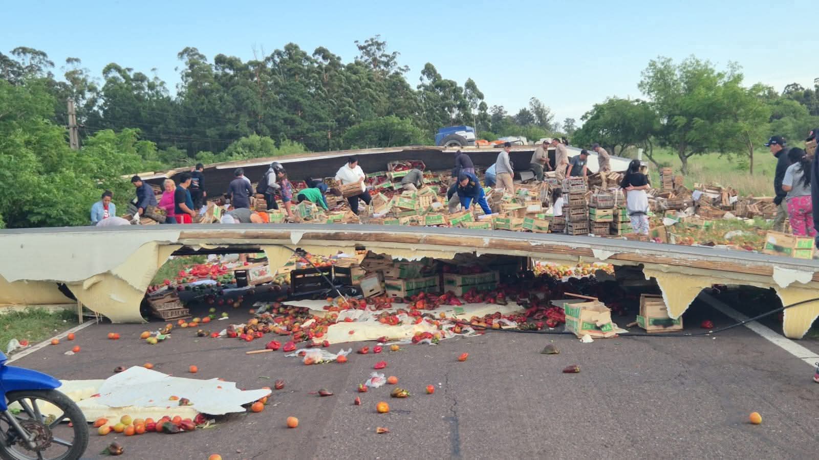 Volcó un camión con verduras en la Ruta 12 y la gente se llevó la carga
